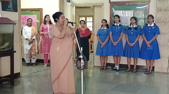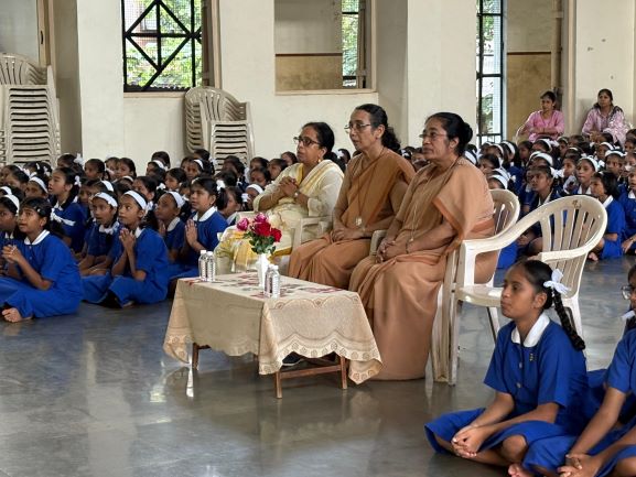 On 17th June 2025, a welcoming prayer service was held in the school auditorium at Canossa High School. The new Manager, Sr. Catherine Gonsalves, Principal Sr. Sheela Varkey, and Supervisor Ms. Reena Sabu were warmly felicitated. Both Sr. Catherine and Sr. Sheela addressed the gathering with words of encouragement, expressing their hopes and blessings for the year ahead.