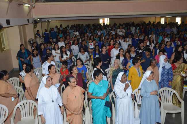 An initiative taken by Ms. Amrita Divay to start this group and the get-together spearheaded with the support of Mrs. Willrine Vaz and the others who joined the team. About 400 students, 35 ex-teachers and sisters attended the programme. All were welcomed with a box of snacks and a key chain with ‘Proud to be a Canossian’ imprinted on it.