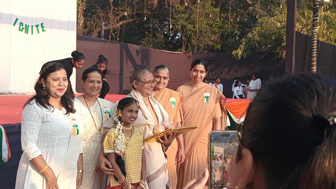 Republic Day at Canossa High School was celebrated with great enthusiasm on January 26, 2025. The chief guest, Sr. Margaret Sequeira, was warmly welcomed with the guard of honor, followed by the ceremonial flag hoisting. The celebration featured a vibrant array of performances, including singing, dancing, and a skit. The program concluded with an inspiring address by Sr. Margaret to the audience.