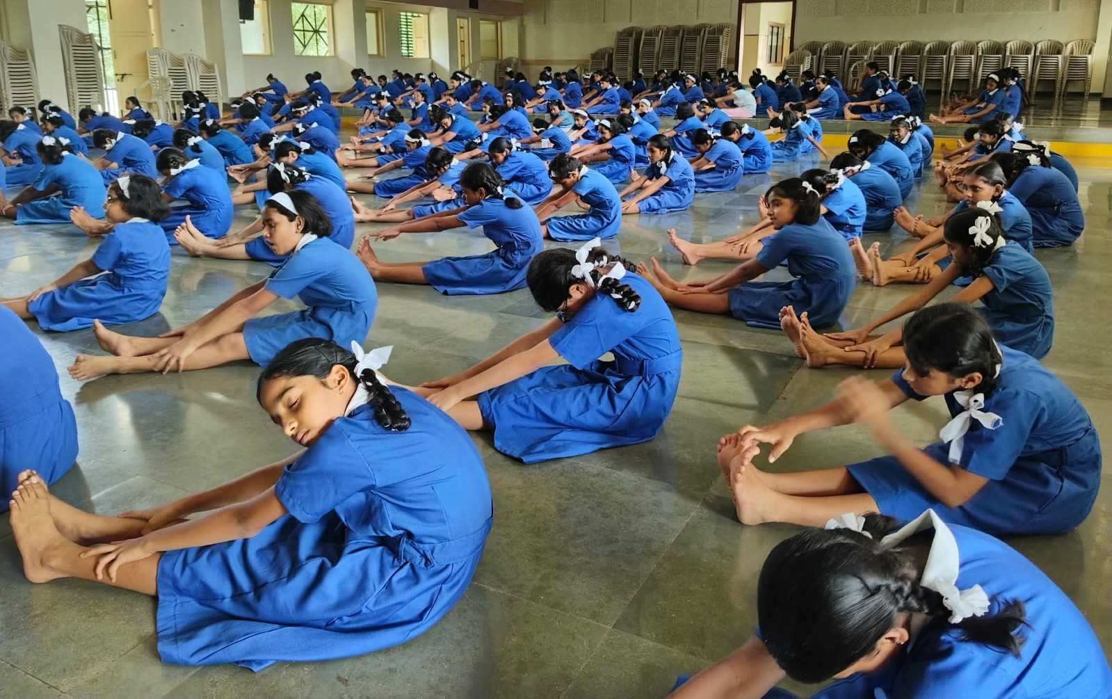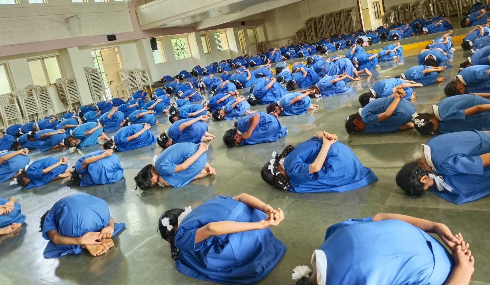 On June 21st, in observance of International Yoga Day, yoga sessions were held for students of Std. 5th – 10th at Canossa High School. Under the guidance of PE teacher Ms. Vrushali Malap, students participated in meditation and practiced yogasanas such as Padmasana, Vajrasana and Shavasana.